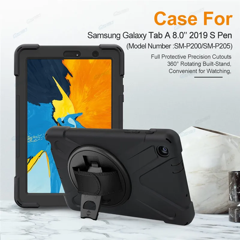 | Silicon Case For Samsung Galaxy Tab A 8.0 2019 S Pen Case 360 Rotating Stand Cover For Galaxy Tab A 8.0 SM-P200P205 Tablet Case |